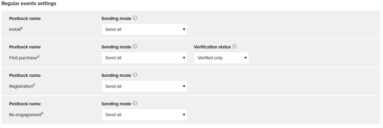 Configure all available postbacks: