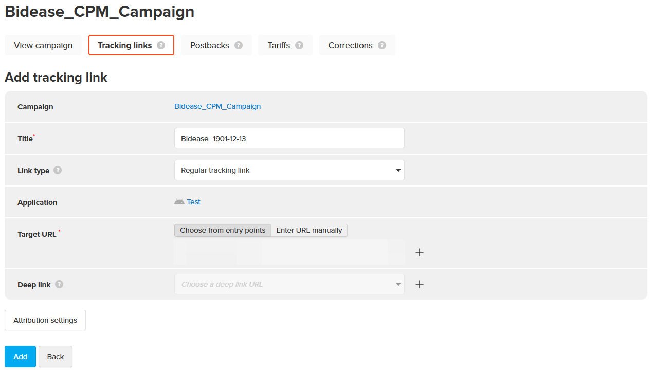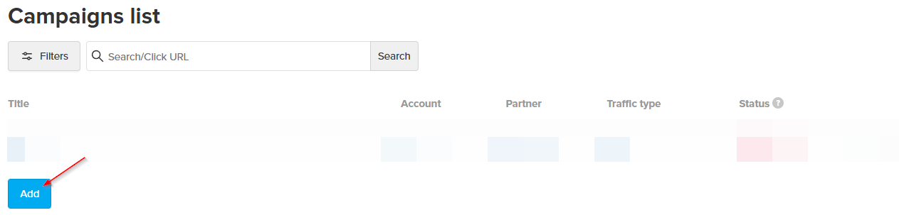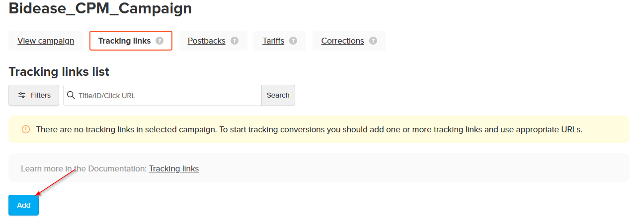 Go to the Tracking links block in the newly created campaign and click the Add button