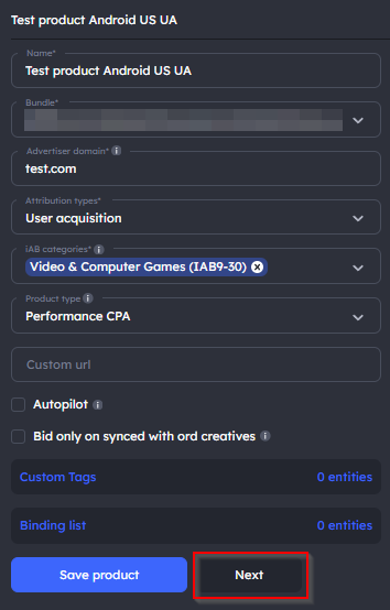 You can add in-app events or installs only if they already exist on the Bidease side (as NAD or attributed events).When finished, click Next to proceed to the Tracking Links section.