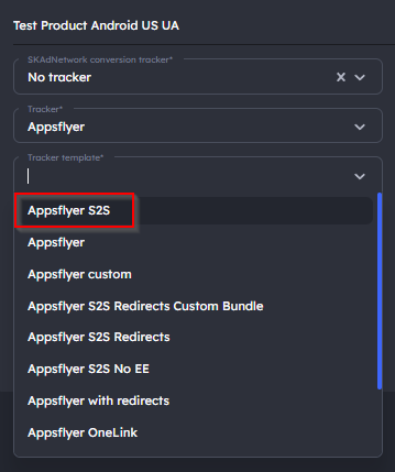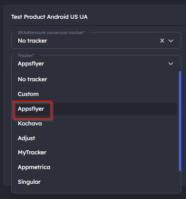 If your product is for iOS, also select Appsflyer as the SKAdNetwork Conversion Tracker.Step 2